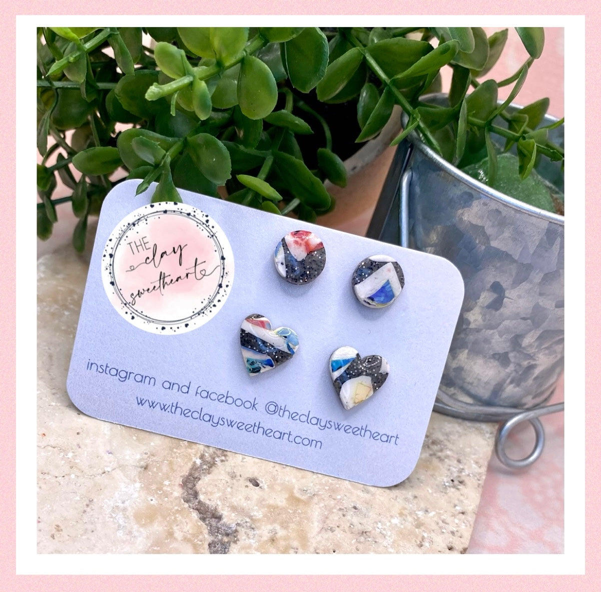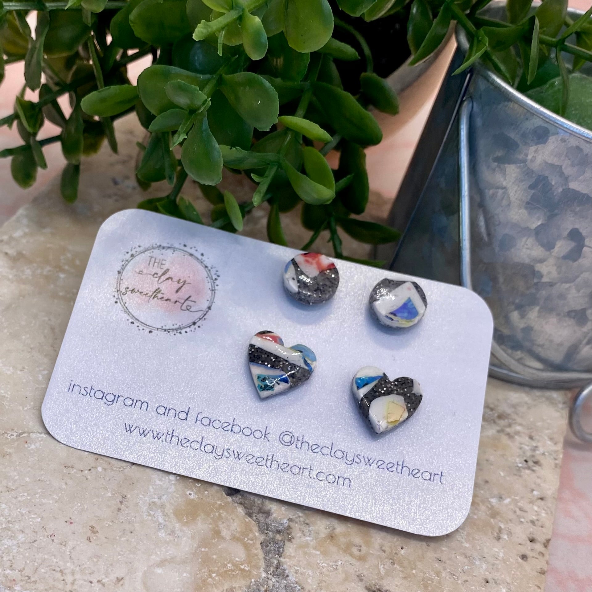 Polymer clay stud earring set with stainless steel posts. 2 pairs of stud earrings.