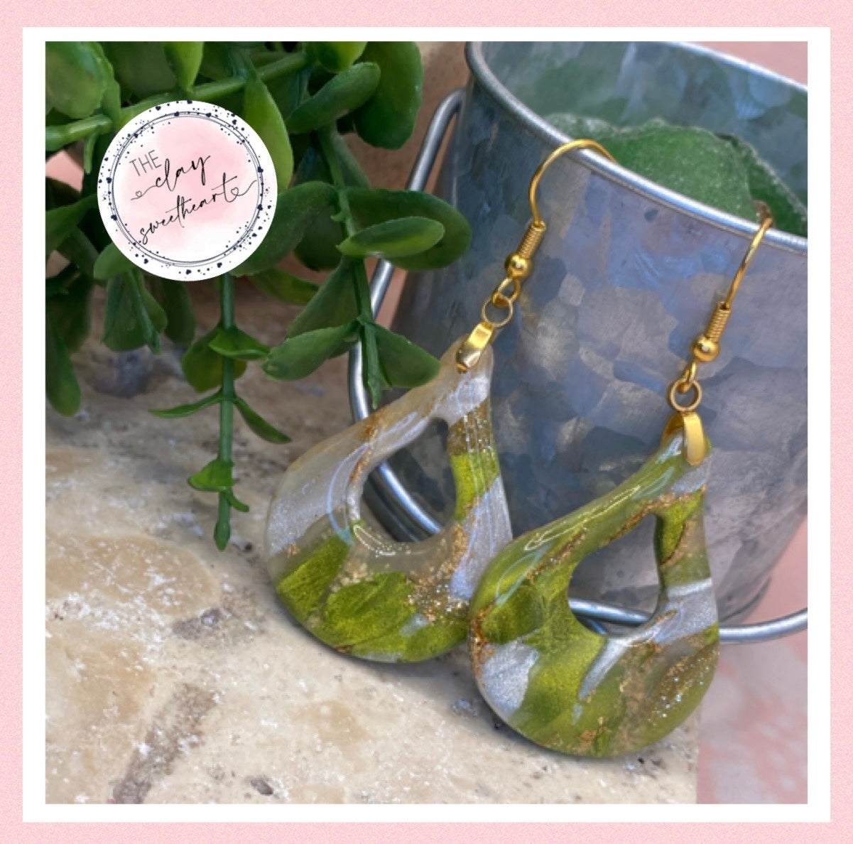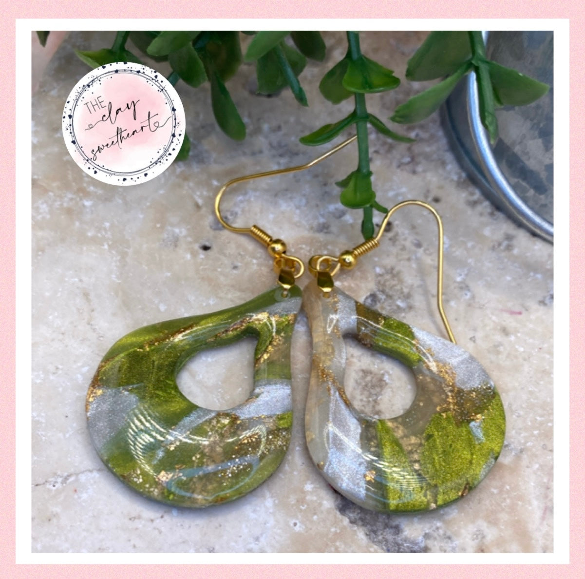 1706 green and gold polymer clay teardrop earrings