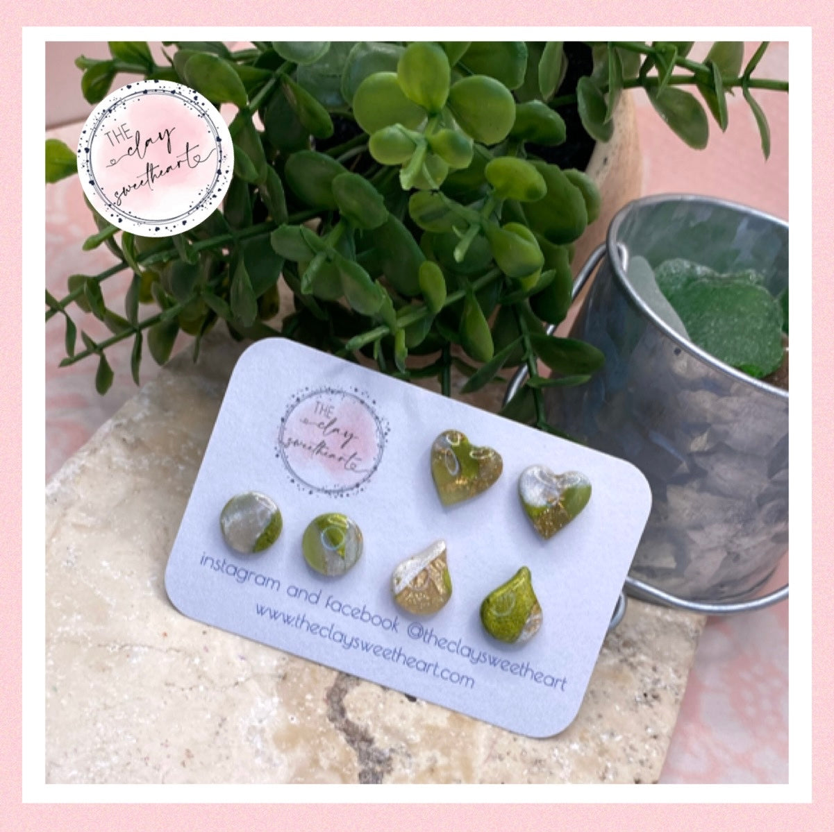 1714 green and gold polymer clay stud earrings