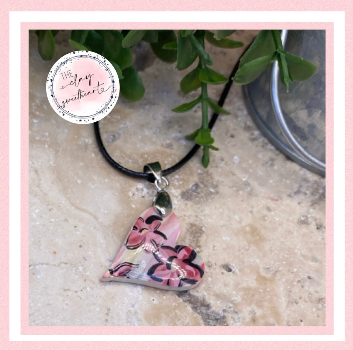 1803 polymer clay heart necklace