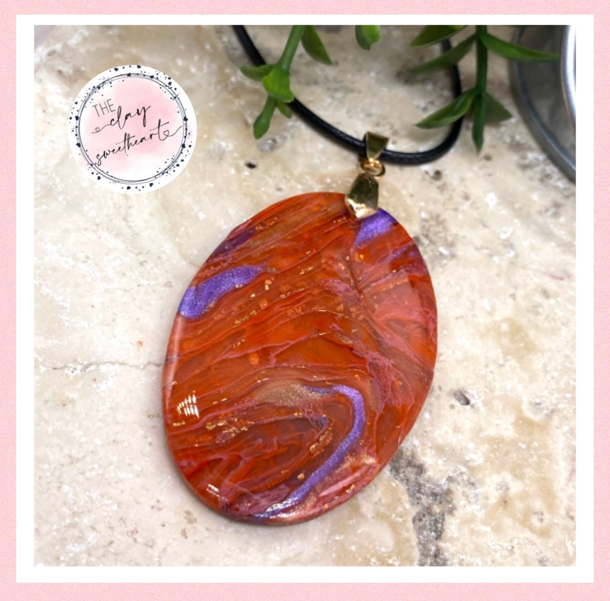 Polymer clay jewelry from the red collection. This necklace is on a 16” black cord with a 2” extender.