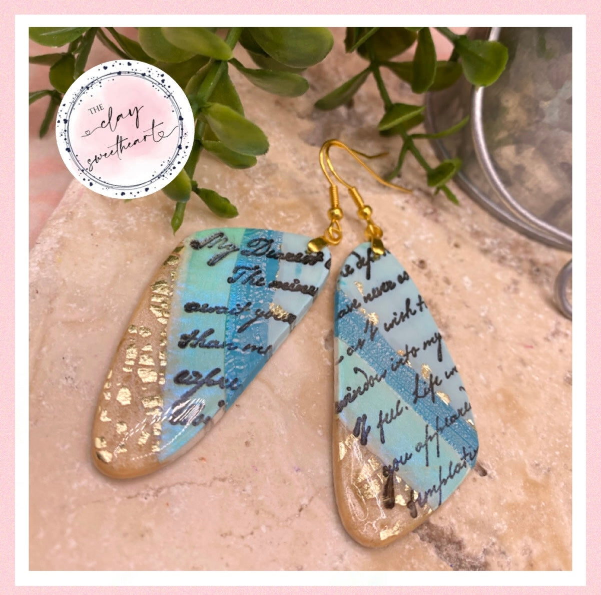 Blue beach vibe earrings on gold colored stainless steel hooks.