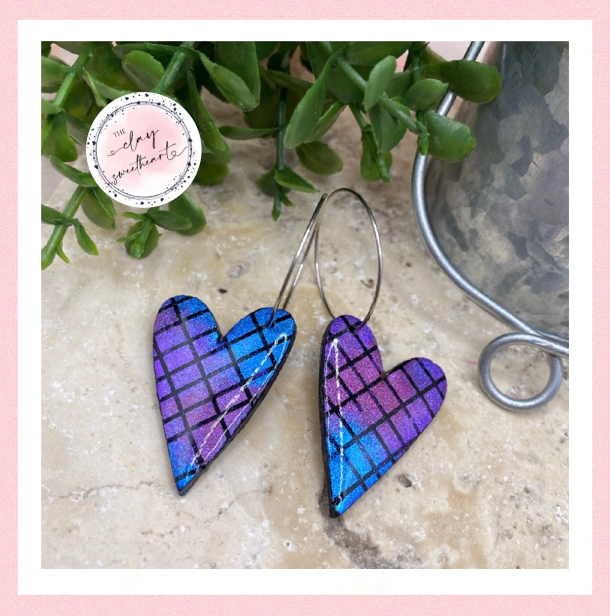 2615 Polymer clay heart color change hoop earrings