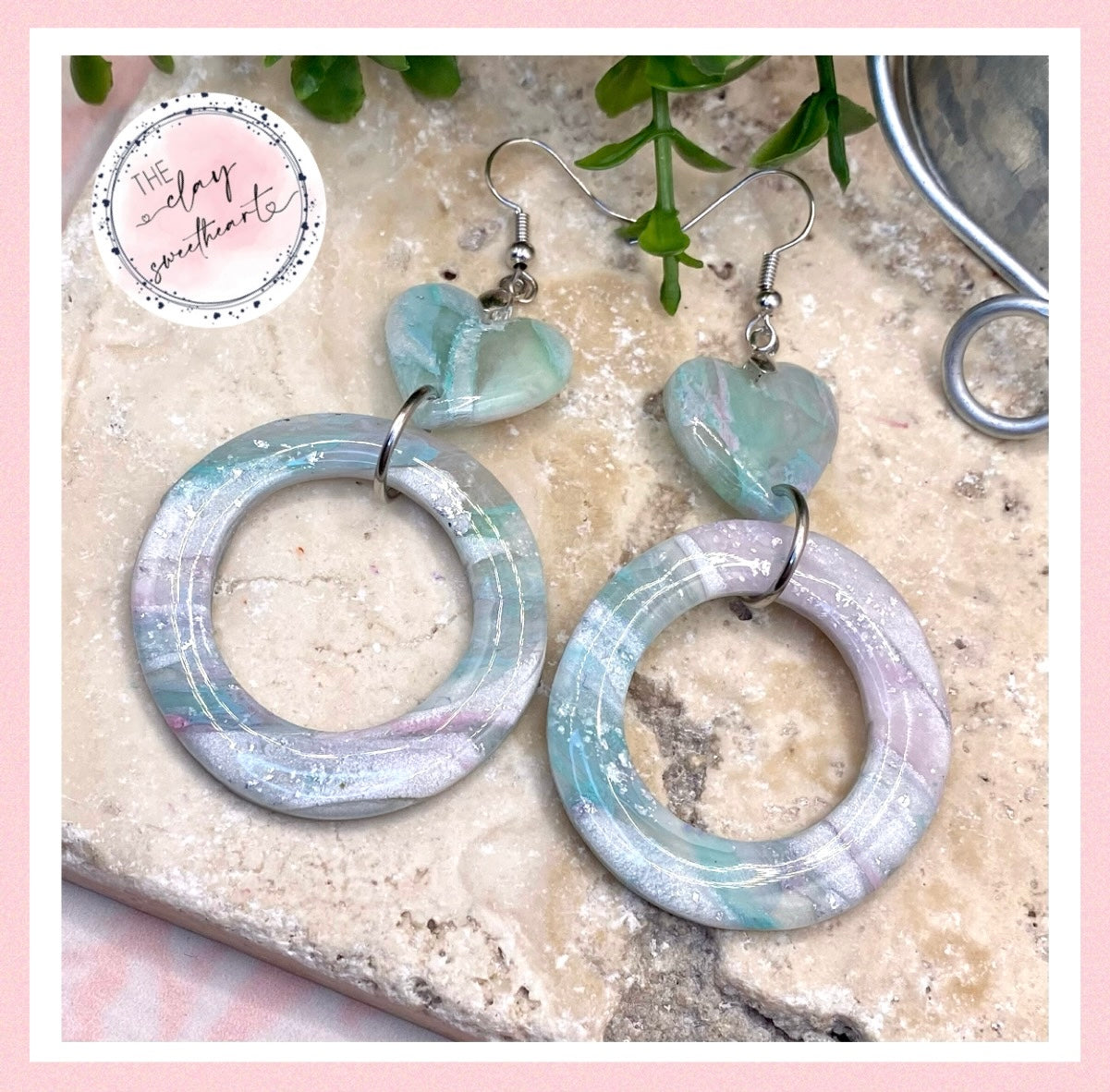 403 polymer clay heart hoop earrings