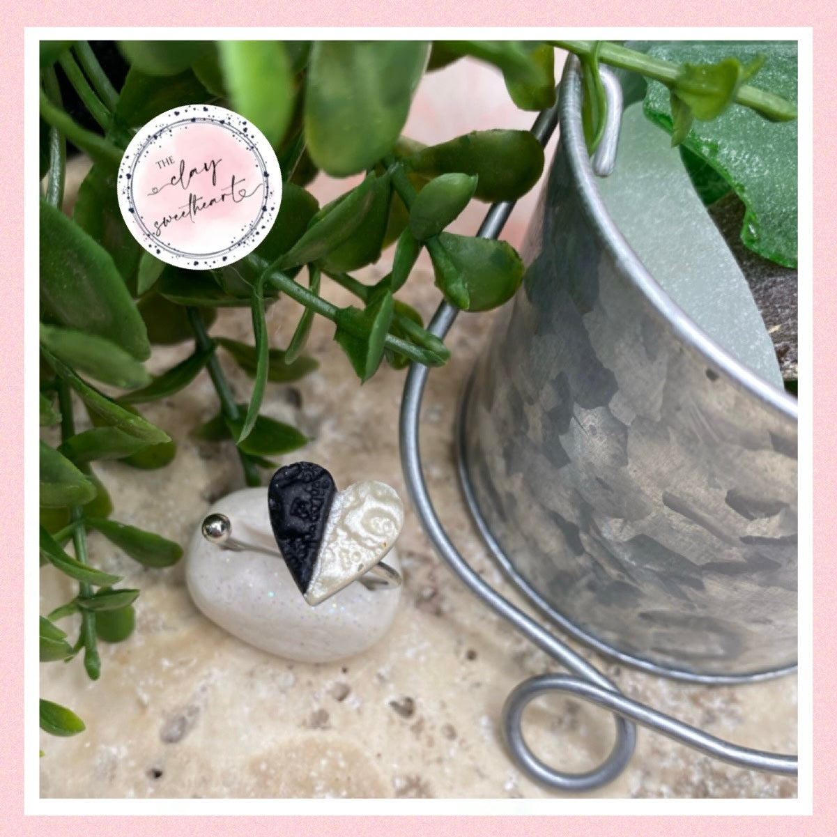 RINGS: All come on a silver or gold toned stainless steel base (as shown in photo). All are adjustable. Silver rings are open in front and gold are open on bottom.