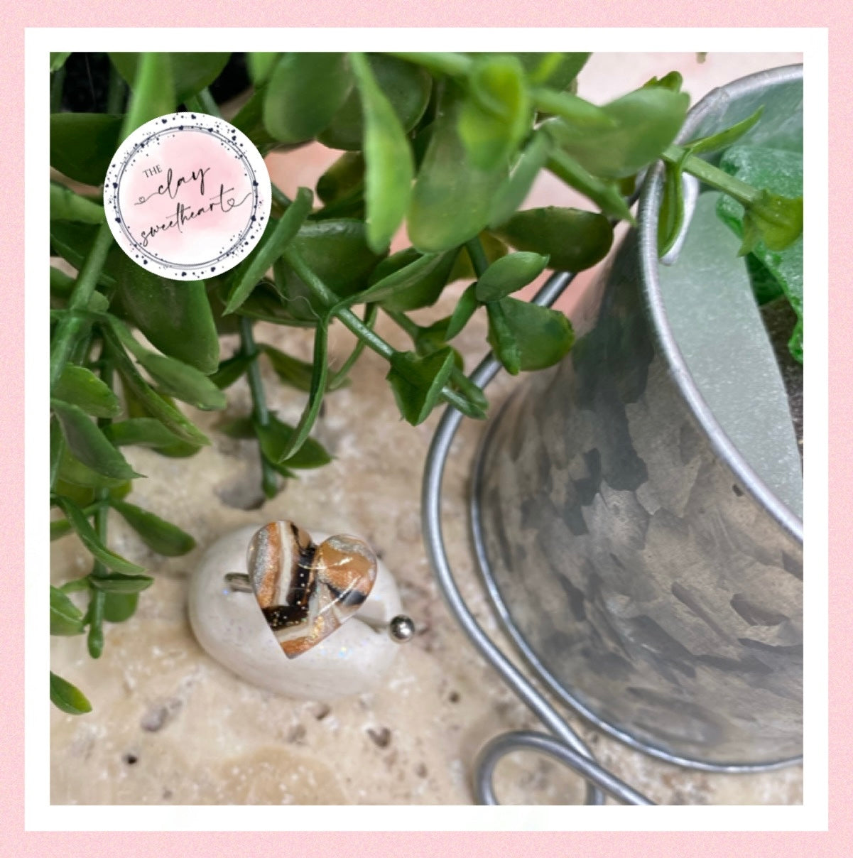 RINGS: All come on a silver or gold toned stainless steel base (as shown in photo). All are adjustable. Silver rings are open in front and gold are open on bottom.