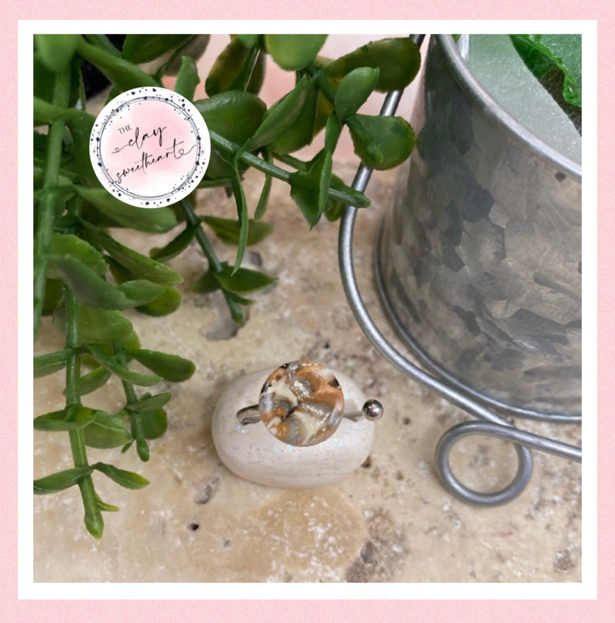 RINGS: All come on a silver or gold toned stainless steel base (as shown in photo). All are adjustable. Silver rings are open in front and gold are open on bottom.