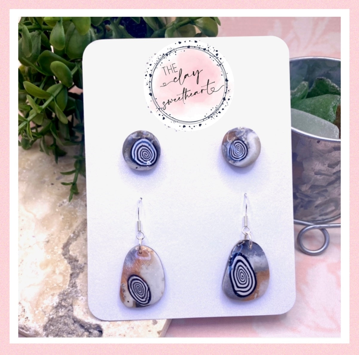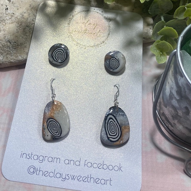 Beautiful handmade polymer clay earrings in a neutral color palette