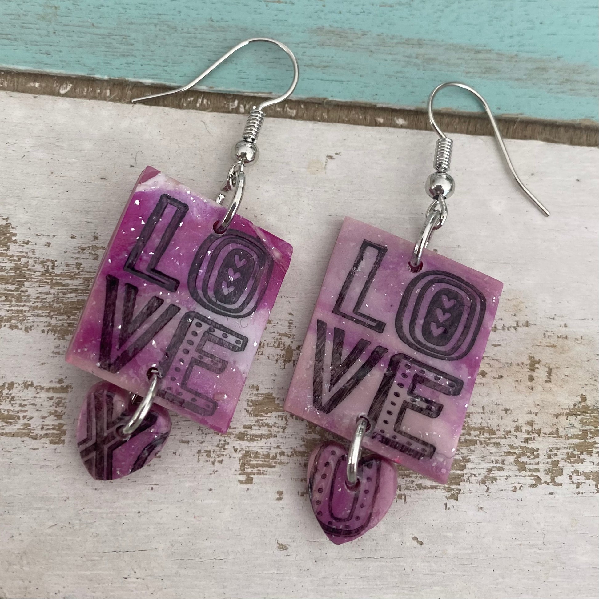 These fun purple valentines earrings have a tie dye vibe to them